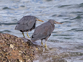 | The pair of dark morph Eastern Reef-Egrets found hunting fish at Arcadia Bay Magnetic Island. They watched for fish with intense focus. |