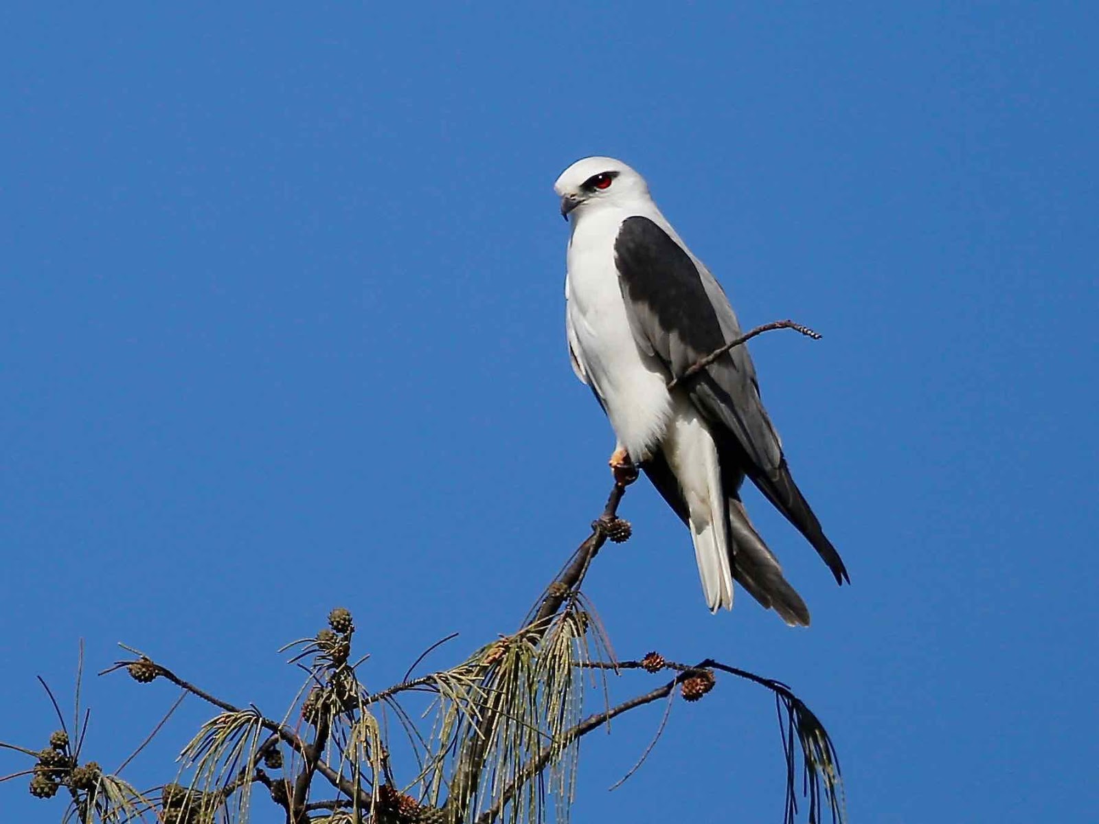 | Pair of Black-shouldered Kites perched in top of the Casuarina. |